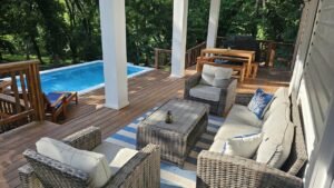 - 1000 square foot covered porch overlooking private pool and landscaping